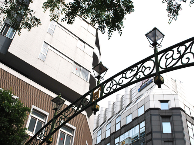 明治23年には、ガス灯は電気の街灯にどんどん置き換わっていったそうです。いまでもガス灯が見られる馬車道通りは、ガス灯に加えて、街路樹、アイスクリーム、乗合馬車などの「日本ではじめて」づくしの場所。写真は街頭の柱部分。緑色がレトロな街並みにとても合います。